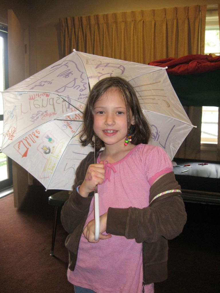 Ellie showcasing her umbrella -ella -ella craft
